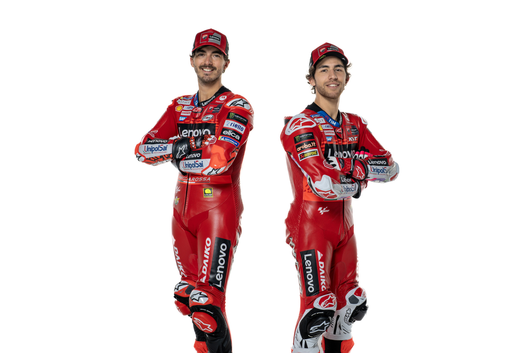 A pintura, como sempre dominada pela cor Ducati Red, foi embelezada com um detalhe gráfico fluorescente que lembra a curva presente no logotipo da Ducati. O atual Campeão Mundial Francesco “Pecco” Bagnaia está pronto para defender o título com o número 1 na carenagem dianteira da sua Desmosedici GP. Bagnaia voltará a ter a companhia do seu compatriota Enea Bastianini, no seu segundo ano com a equipe oficial. Durante a apresentação, o novo Diretor Esportivo da Ducati Corse, Mauro Grassilli, também foi apresentado oficialmente.